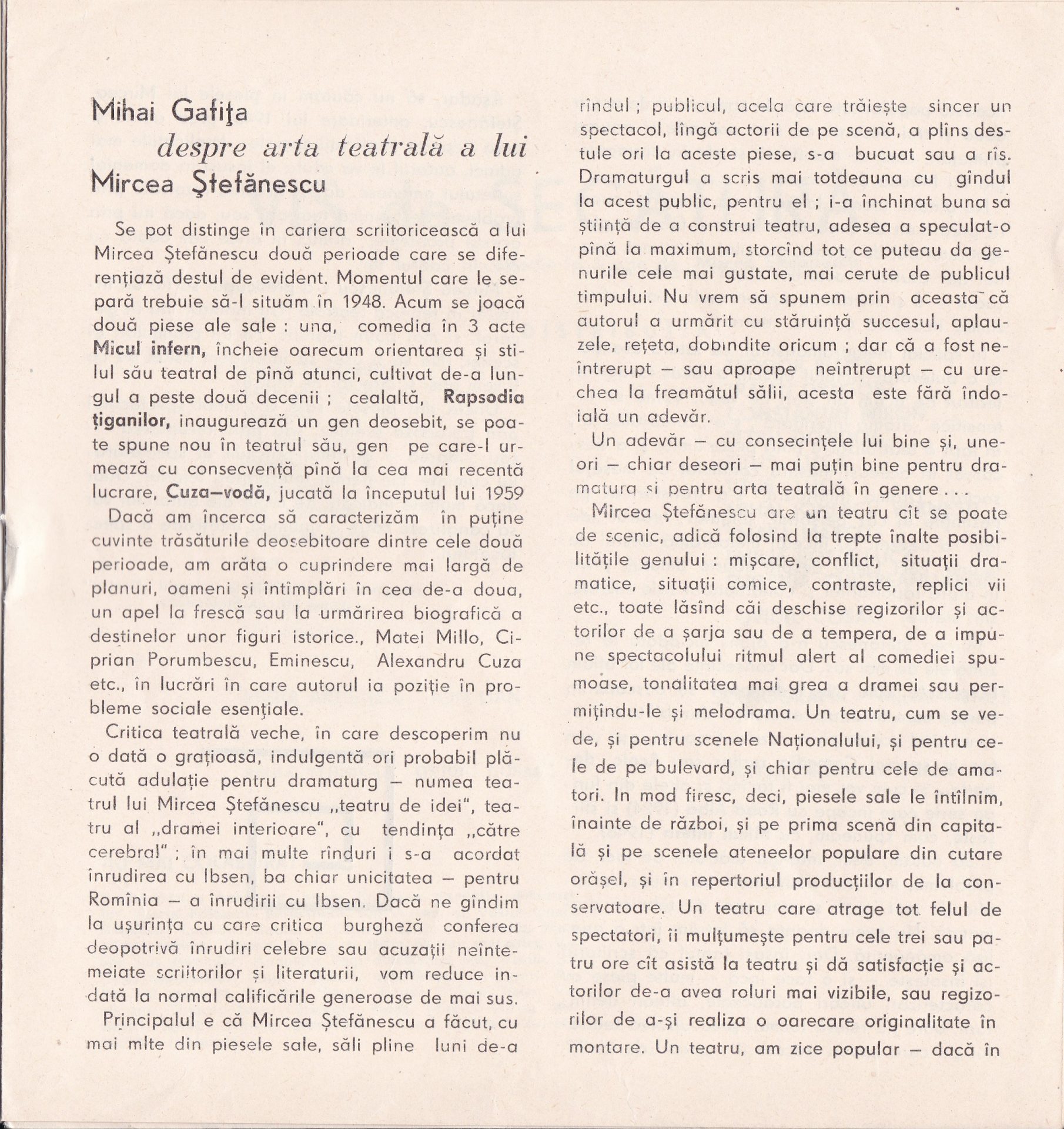 ”Făclia” – 13 apr. 1969 cronică teatrală de Draga Mihan